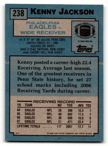 1988 Topps #238 Kenny Jackson Philadelphia Eagles Football Cards EX/ ID:62571
