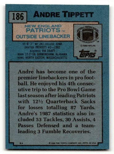 1988 Topps #186 Andre Tippett New England Patriots Football Cards EX ID:62520
