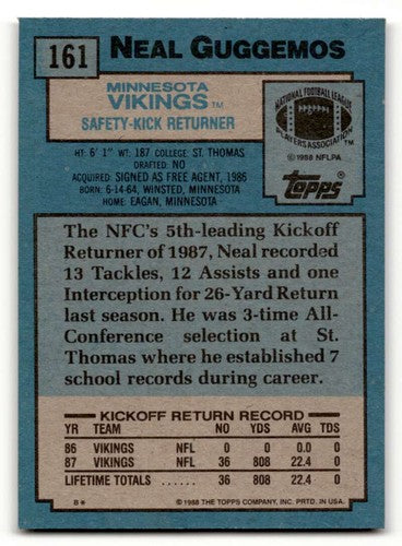 1988 Topps #161 Neal Guggemos Minnesota Vikings Football Cards EX/NM ID:62495