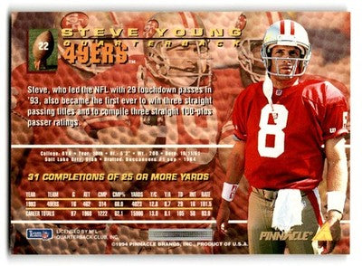 1994 Pinnacle Football Steve Young #22 San Francisco 49ers