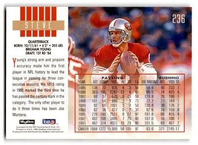 1994 Skybox Football Impact Steve Young #236 San Francisco 49ers