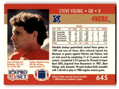 1990 Pro Set Football Steve Young #645 San Francisco 49ers