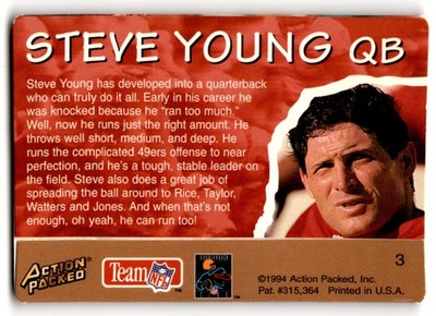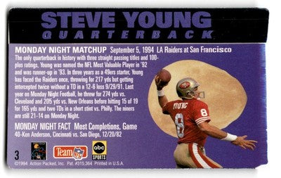 1994 Action Packed Football Monday Night Steve Young #3 San Francisco 49ers