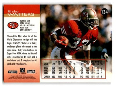 1995 Skybox Football Impact Ricky Watters #134 San Francisco 49ers