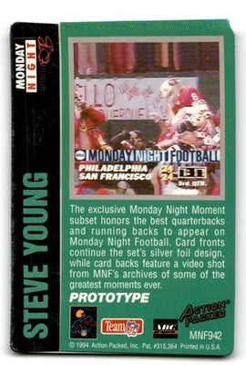 1994 Action Packed Monday Night Football Steve Young Prototypes #MNF942 49ers