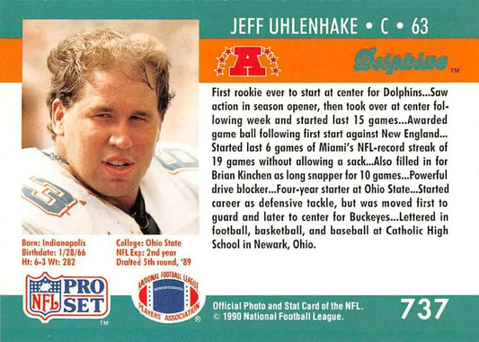 1990 Pro Set #737 Jeff Uhlenhake NM-MT Miami Dolphins Football Card