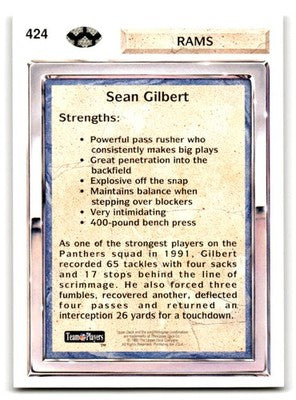 1992 Upper Deck Football Sean Gilbert #424 RC Los Angeles Rams