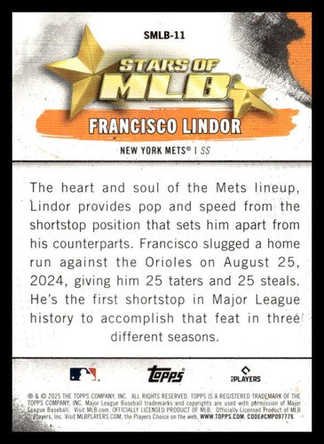 2025 Topps Stars of MLB #SMLB-11 Francisco Lindor NM-MT Mets ID:76882