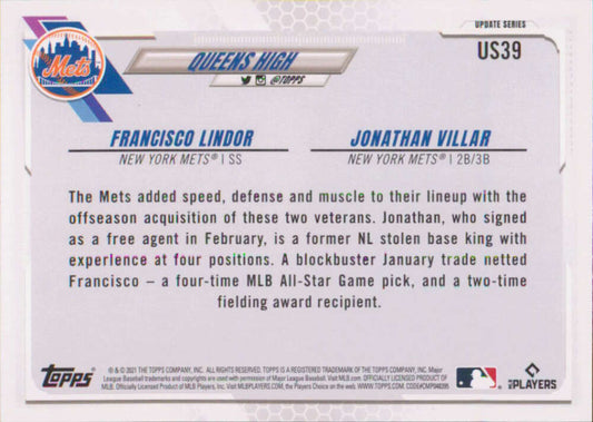 2021 Topps Update #US39 Francisco Lindor/Jonathan Villar NM-MT Mets