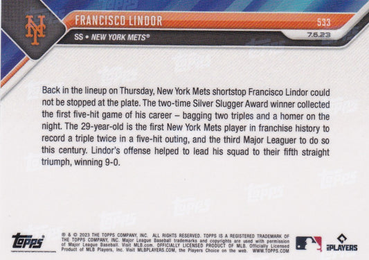 2023 TOPPS NOW #533 FRANCISCO LINDOR- NEW YORK METS