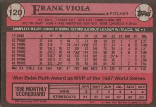 1989 Topps #120 Frank Viola NM-MT Minnesota Twins Baseball Card