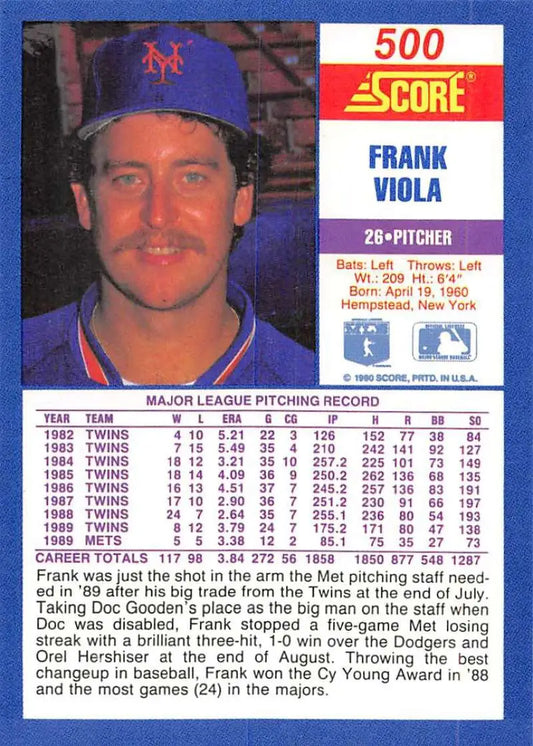 1990 Score #500 Frank Viola NM-MT New York Mets Baseball Card