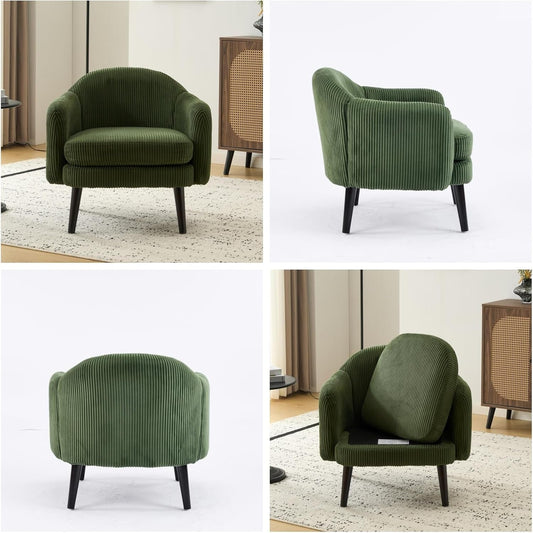 Corduroy Green Barrel Chair 30.3 Inch Wide With Wood Legs