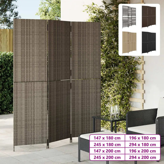vidaXL Room Divider 3 Panels Gray Poly Rattan