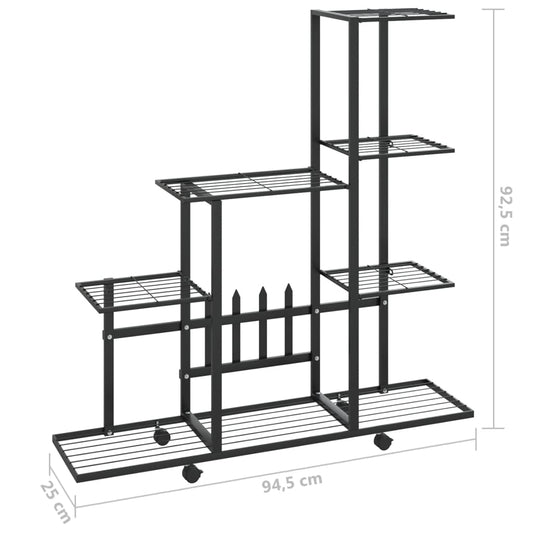 vidaXL Flower Stand with Wheel 37.2"x9.8"x36.4" Black Metal