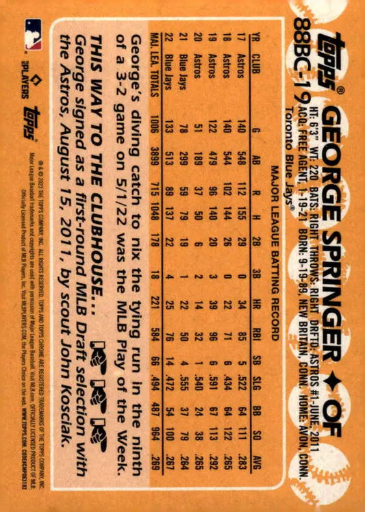 2023 Topps Chrome 1988 Baseball Refractor #88BC-19 George Springer NM-MT Toronto Blue Jays Baseball Card