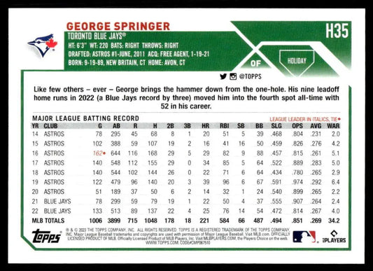 2023 Topps Holiday #H35 George Springer NM-MT Toronto Blue Jays Baseball Card