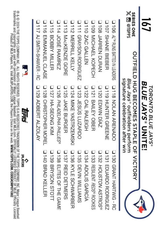 2024 Topps #167 George Springer NM-MT Toronto Blue Jays Baseball Card