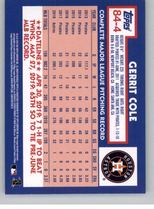 2019 Topps Update 1984 Topps #84-4 Gerrit Cole NM-MT Houston Astros Baseball Card