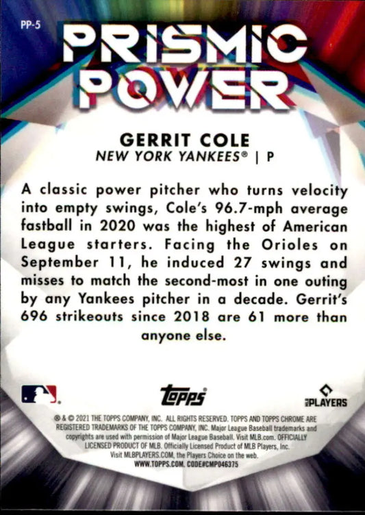 2021 Topps Chrome Prismic Power Refractor #PP-5 Gerrit Cole NM-MT New York Yankees Baseball Card