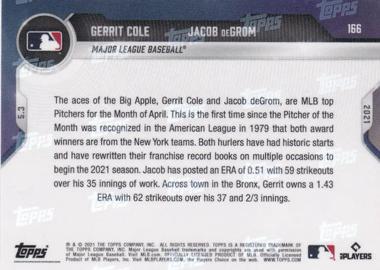 2021 TOPPS NOW #166 GERRIT COLE- MLB