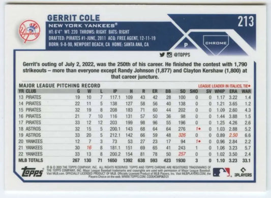 2023 Topps Chrome #213 Gerrit Cole NM-MT New York Yankees Baseball Card