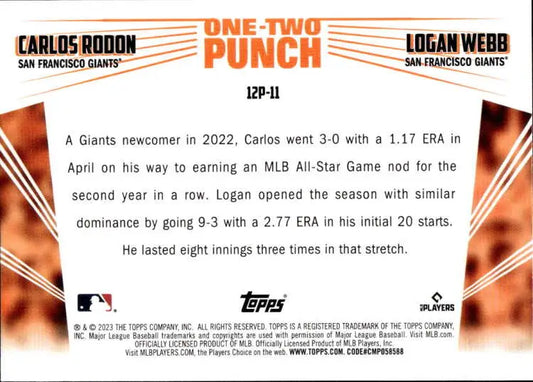 2023 Topps One-Two Punch #12P-18 Gerrit Cole/Justin Verlander NM-MT Houston Astros Baseball Card