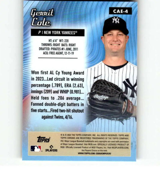 2024 Topps Chrome All Etch Refractor #CAE-4 Gerrit Cole NM-MT New York Yankees Baseball Card