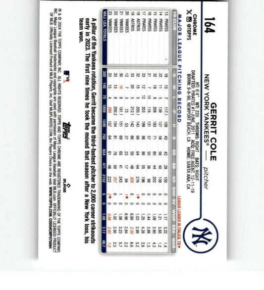 2024 Topps Chrome Refractor #164 Gerrit Cole NM-MT New York Yankees Baseball Card