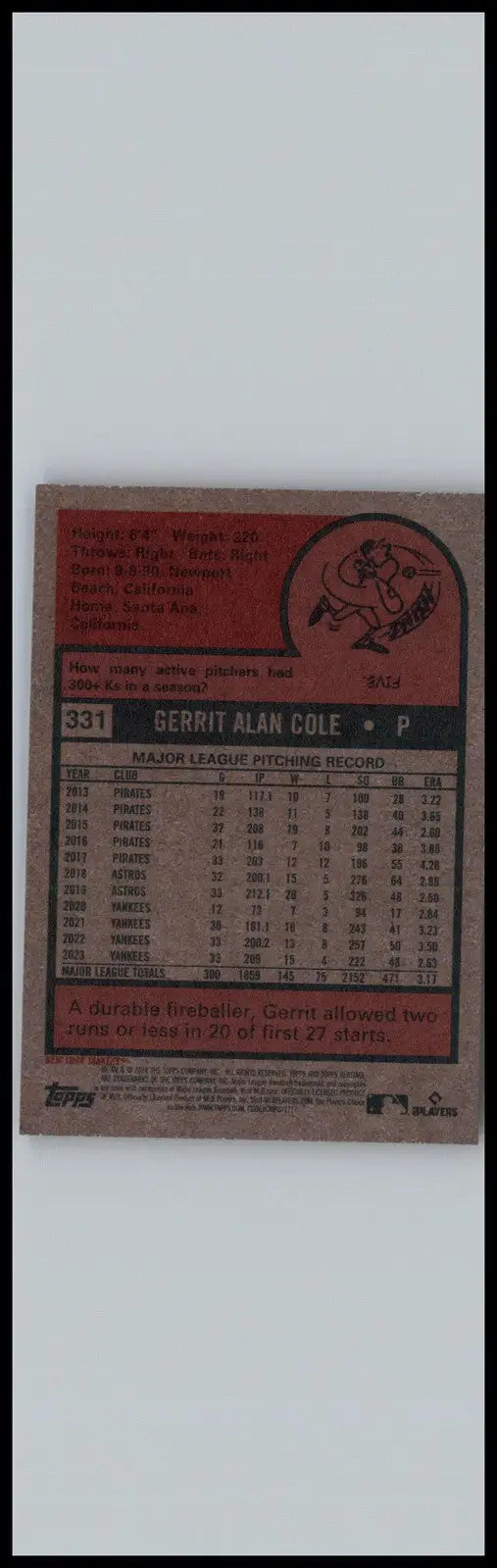 2024 Topps Heritage #331 Gerrit Cole New York Yankees