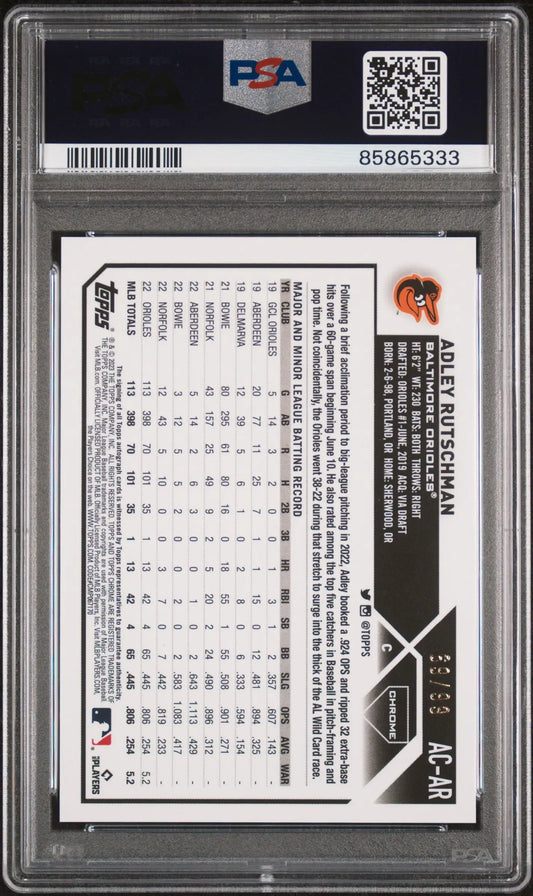 Adley Rutschman 2023 Topps Chrome Update Green Refractor Auto 69/99 PSA 9 Auto 10