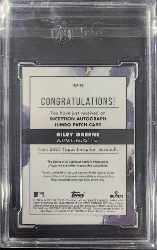 Riley Greene 2023 Topps Inception Jumbo Auto Patch Blue #8/10 SGC 10 Auto 10