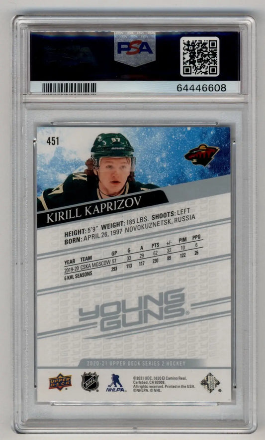 Kirill Kaprizov 2020-21 Upper Deck Young Gun #451 PSA 10 Gem Mint 6608