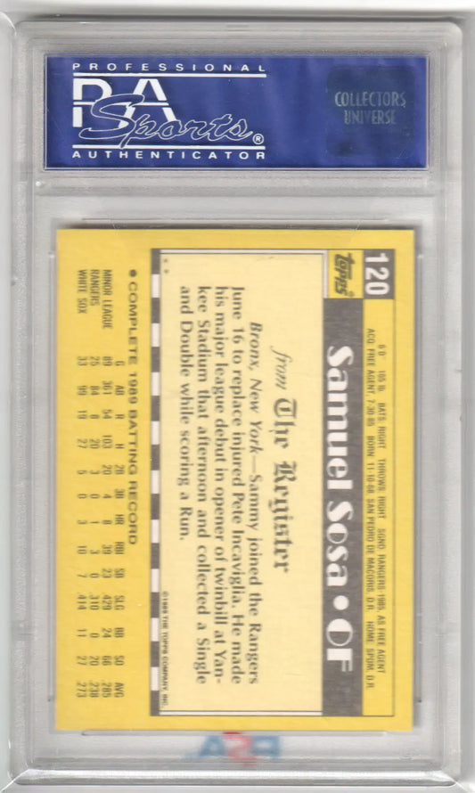 SAMMY SOSA 1990 Topps '89 ML Debut Rookie RC #120 PSA 10 GEM MINT - CUBS