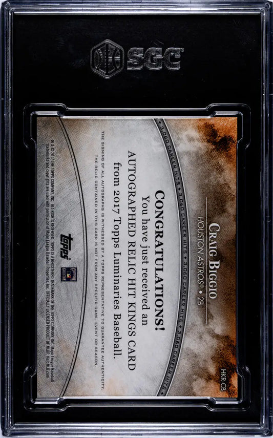 2017 Topps Luminaries Hit Kings Relics Red #HKR-CB Craig Biggio SGC 9 MINT MEM Auto 4/10 Houston Astros Baseball Card
