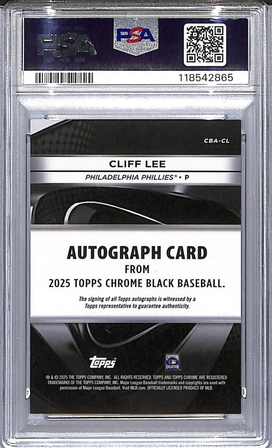 2025 Topps Chrome Black #CBA-CL Cliff Lee PSA 8 NM-MT Auto Philadelphia Phillies