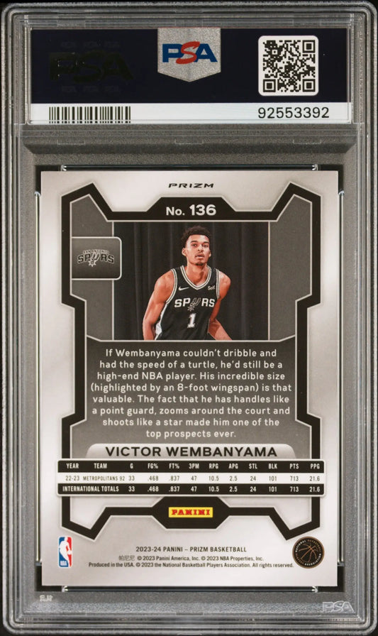 Victor Wembanyama 2023 Panini Prizm #136 Green Ice PSA 9 Mint 3992