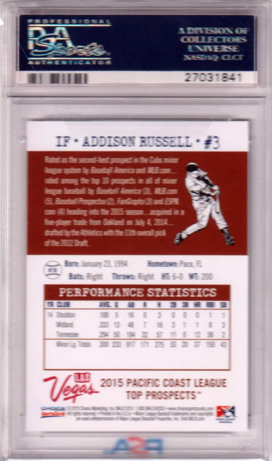 ADDISON RUSSELL 2015 Choice PCL Top Prospects #10 PSA 10 GEM MINT - CUBS POP 9