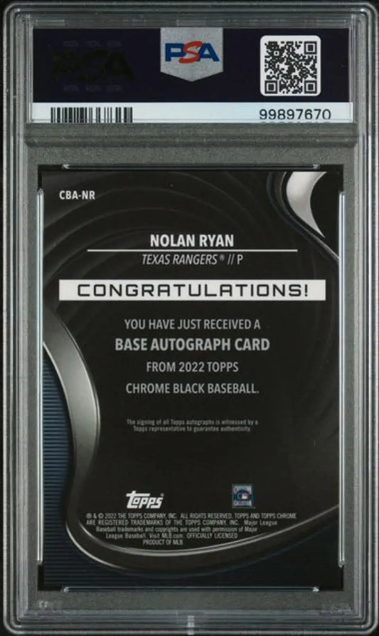 2022 Topps Chrome Black Refractor Gold Mini-Diamond #CBA-NR Nolan Ryan PSA 10 GEM MINT Auto 22/50 Texas Rangers Baseball Card
