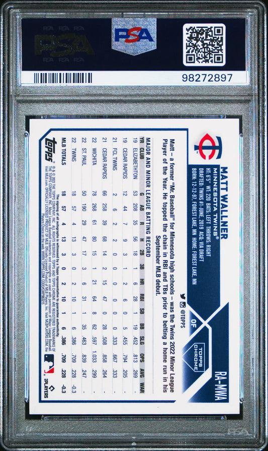 Matt Wallner 2023 Topps Chrome Gold Refractor Auto Rookie #36/50 PSA 10 Gem Mint