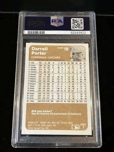 Darrell Porter Signed 1983 Fleer #18 Cardinals Autograph PSA 4 DNA 10 Auto