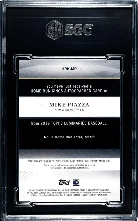 2019 Topps Luminaries Home Run Kings #HRK-MP Mike Piazza SGC 10 Gem Auto 7/15 New York Mets Baseball Card