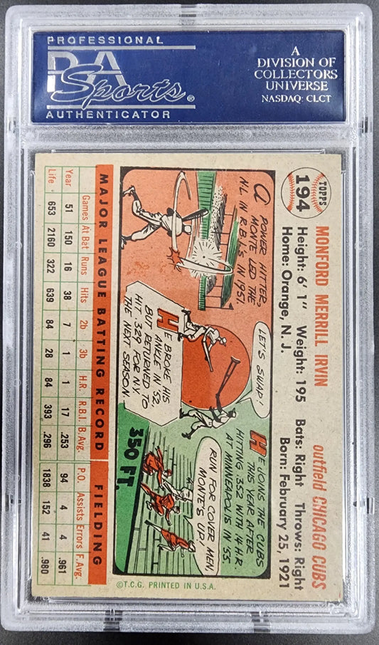 Monte Irvin 1956 Topps #194 PSA 6 EX-MINT