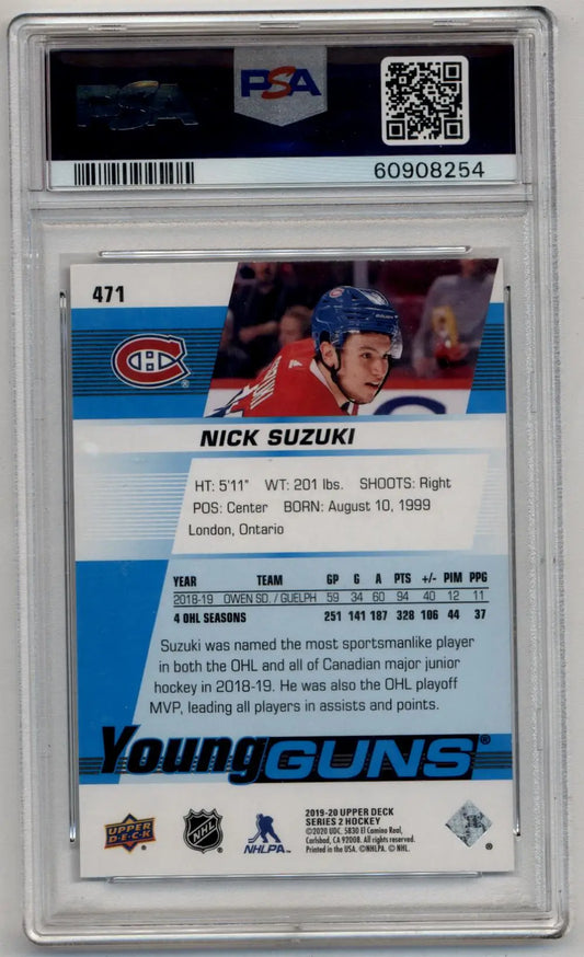 Nick Suzuki 2019-20 Upper Deck Young Gun #471 PSA 10 Gem Mint 8254