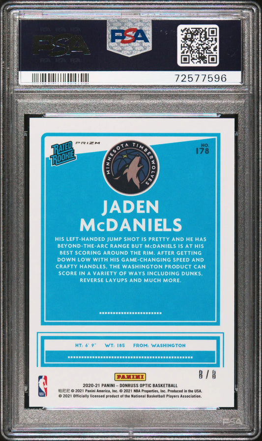 Jaden McDaniels 2020 Donriss Optic #178 Black Gold #8/8 PSA 9 Mint