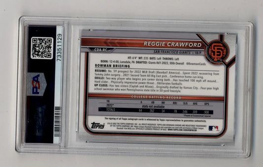 Reggie Crawford 2022 Bowman Chrome Draft Prospects Blue Refractor Auto 059/150 PSA 10 Gem Mint