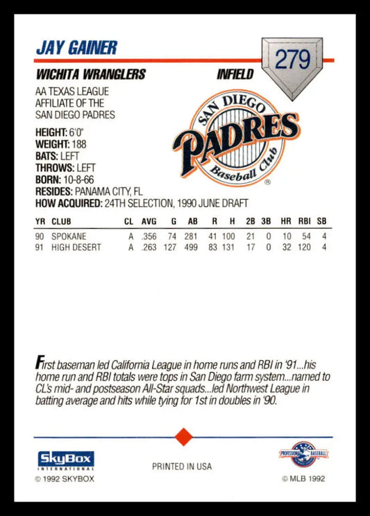 1992 Skybox AA #279 Jay Gainer Wichita Wranglers NM-MT Baseball Card