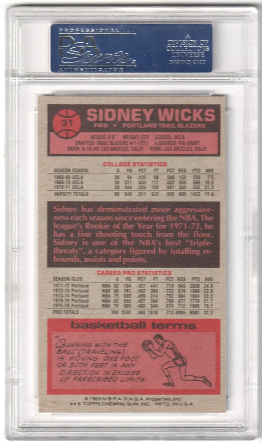 SIDNEY WICKS 1976-77 Topps #31 PSA 8 NM-MT - TRAIL BLAZERS