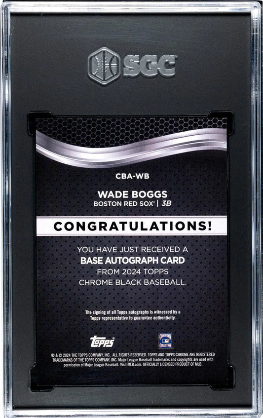 2024 Topps Chrome Black #CBA-WB Wade Boggs SGC 10 Gem Auto Boston Red Sox Baseball Card