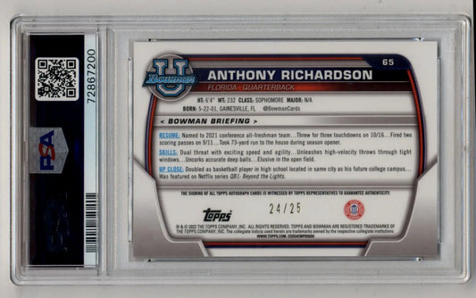 Anthony Richardson 2022 Bowman University Chrome Prospects 24/25 SP Auto PSA 9 Mint